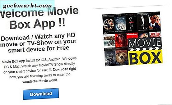 Tôi đã sử dụng Movie Box một thời gian và có rất ít vấn đề với nó. Nó dường như không có nhiều nội dung HD như Showbox, nhưng nếu bạn có thể đối phó với 720p, có rất nhiều nội dung để bạn lựa chọn.