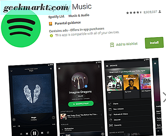 Spotify Music là một ứng dụng nghe nhạc đỉnh cao dành cho Android và các thiết bị khác. Nó cũng có hàng triệu bài hát và người dùng và cung cấp cả hai tài khoản miễn phí và phí bảo hiểm. Bạn không thể tải xuống nhạc bằng tài khoản miễn phí nhưng bạn có thể truyền trực tuyến tới ứng dụng hoặc trình duyệt của mình. Mua Spotify Premium và bạn có thể tải các bản nhạc xuống thiết bị của mình để nghe ngoại tuyến.