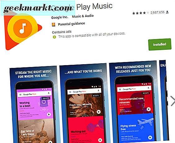 Google Play Âm nhạc là nỗ lực riêng của Google để giành thị phần từ iTunes và Spotify. Nó cho phép bạn tải lên âm nhạc của riêng bạn cũng như nghe danh sách phát từ những người khác và được Google tự quản lý. Có hàng triệu bài hát và đăng ký một tài khoản trả phí và bạn có thể tải nhạc xuống thiết bị của mình.