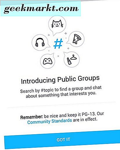 Hoặc ít nhất là họ đã làm, mặc dù một bản cập nhật gần đây cuối cùng đã thay đổi cách dịch vụ nhóm của Kik làm việc trong ứng dụng. Chính thức, gần như không thể tìm thấy các cuộc trò chuyện nhóm trong chính Kik, vì các nhà phát triển ứng dụng đã xóa khả năng tìm kiếm các nhóm công khai thông qua ứng dụng. Mặc dù điều này có nghĩa là người dùng buộc phải sử dụng mã Kik để tham gia nhóm, các nhóm công khai đã được thêm lại vì chúng tôi đã xuất bản hướng dẫn của chúng tôi để tìm kiếm cộng đồng trực tuyến. Chúng tôi sẽ thảo luận về việc tìm kiếm cộng đồng thông qua các nguồn như Reddit và Facebook bên dưới, nhưng bây giờ, hãy tập trung vào tiện ích nhóm công khai cuối cùng đã mang lại cho Kik. Để bắt đầu sử dụng các nhóm công khai trên Kik, hãy nhấn vào biểu tượng Tin nhắn mới trong ứng dụng của bạn (điều này có thể thay đổi về vị trí dựa trên việc bạn đang sử dụng iOS hay Android; ảnh chụp màn hình của chúng tôi đang sử dụng sau) và chọn Nhóm công khai. Bạn sẽ thấy một trang mới thông báo về việc giới thiệu các nhóm công khai, cảnh báo người dùng giữ mọi thứ PG-13 trong ứng dụng. Nhấp vào “OK” và đi vào khu vực trò chuyện công khai.