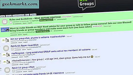 Tìm kiếm Google hoặc Bing sẽ giúp bạn có một số lợi nhuận nếu bạn đang tìm kiếm một nhóm cụ thể, mặc dù như chúng ta đã thấy với Facebook, tính năng trò chuyện công khai mới dường như làm cho các tìm kiếm này trở nên lỗi thời. Tìm kiếm các nhóm mới thông qua trò chuyện Kik dễ dàng hơn nhiều so với sử dụng công cụ tìm kiếm trực tuyến. Cuối cùng, có một số trang web trực tuyến chủ yếu tồn tại để tìm người dùng và nhóm mới để trò chuyện, mặc dù chúng tôi sẽ hạn chế liên kết đến các trang web đó, vì họ được biết là chủ nhà săn mồi nguy hiểm hoặc râm. Kể từ khi Kik có một khán giả trẻ như vậy để trò chuyện, điều quan trọng là phải cẩn thận khi sử dụng các trang web này. Ngay cả các nhóm subreddit có thể được nhìn thấy với một số lượng nguy hiểm, mặc dù các quy tắc và hướng dẫn có được thành lập bởi người kiểm duyệt giữ những thứ một chút sạch hơn bạn có thể mong đợi.