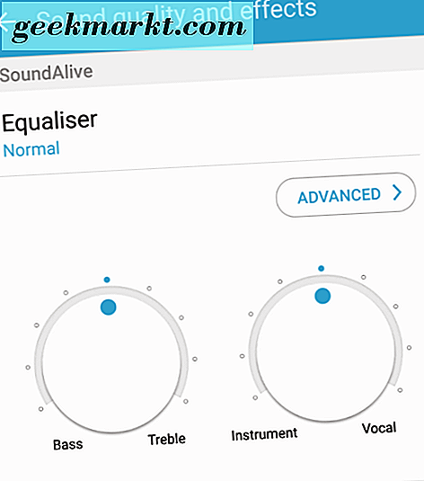 Không phải mọi điện thoại đều có bộ cân bằng tích hợp, điều đó có nghĩa là bạn sẽ cần phải xem Cửa hàng Play. Một số thiết bị, như Galaxy S7 của Samsung và Galaxy S8, bao gồm cả bộ cân bằng theo mặc định, có thể truy cập trong menu cài đặt của điện thoại bằng cách đi sâu vào cài đặt của ứng dụng. Các điện thoại khác, bao gồm cả chuỗi Pixel của Google, sử dụng bộ cân bằng tiêu chuẩn do Google tạo ra, tổng thể, khá cơ bản. Nếu bạn muốn xem liệu điện thoại Android của bạn có bộ cân bằng được cài đặt sẵn bao gồm trong ứng dụng hay đi sâu vào Google Play Âm nhạc, được bao gồm theo mặc định trên mọi điện thoại Android hiện đại. Bên trong menu cài đặt, bạn sẽ tìm thấy một tùy chọn để chọn "Bộ chỉnh âm" trong cài đặt phát lại của bạn. Nếu lựa chọn menu không có, hoặc màu xám, bạn có thể không có bộ chỉnh âm áp dụng được bao gồm theo mặc định trong phần mềm hệ thống của điện thoại. Nếu không, hãy nhấp vào cài đặt. Điều này sẽ tải EQ hệ thống của bạn, cung cấp cho bạn một số tùy chọn. EQ của Samsung, được nhìn thấy ở trên, cho phép quay số cho Bass và Treble, cũng như Instrument và Vocal, và một tùy chọn cài sẵn cho việc lựa chọn một số âm thanh khác nhau. Một bộ cân bằng truyền thống hơn, hoàn chỉnh với các thanh trượt tần số, có thể truy cập thông qua tab Nâng cao.