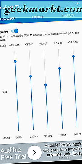 - Equalizer FX giống như phiên bản Equalizer hiện đại, trình bày một bộ cân bằng cơ bản, dễ sử dụng trong một gói Google esque sạch sẽ. Ứng dụng cơ bản cung cấp cho bạn bộ cân bằng năm dải, giống như phiên bản chuẩn của riêng Google, cho phép bạn điều chỉnh độ mạnh của âm trầm và tiếng treble. Equalizer FX bao gồm 12 giá trị đặt trước khác nhau, một số tiền tốt cho giá nhập 1, 99 đô la và cho phép bạn đặt một số tiện ích trên màn hình chính để điều khiển âm thanh mà không phải mở ứng dụng. Một người tăng cường độ ồn có thể giúp đỡ trên máy bay hoặc khi bạn đang cắt cỏ, đó là tin tuyệt vời cho những người trong chúng ta làm việc bên ngoài trong khi nghe nhạc. Nếu có một phàn nàn lớn về Equalizer FX, đó là sự thiếu hỗ trợ cho các dải âm thanh bổ sung, một cái gì đó mà người hâm mộ của ứng dụng dường như mong muốn là tiêu chuẩn. Tuy nhiên, đây là một ứng dụng sạch sẽ, được thiết kế tốt và hoàn hảo cho bất kỳ ai chỉ mới bắt đầu với bộ cân bằng.