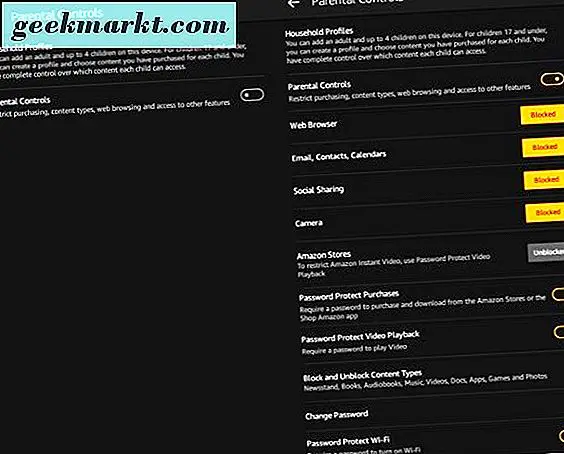 Thứ tự đầu tiên của doanh nghiệp là thiết lập Parental Controls trên Kindle Fire. Đây là bộ bảo vệ cơ bản cung cấp quyền kiểm soát mua hàng, loại nội dung có sẵn, duyệt và email. Nó cũng có thể chặn hoặc cho phép các mạng xã hội và chia sẻ.