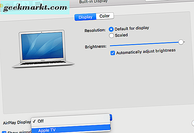 - Trên hộp “Hiển thị được tích hợp sẵn” mở ra, điều hướng xuống “Màn hình AirPlay.” Nhấp vào thanh chọn và chọn “Apple TV”.