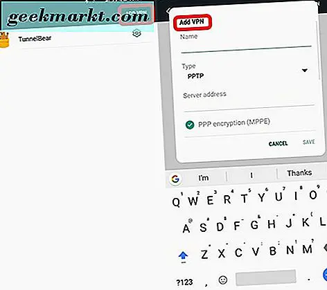 Bạn sẽ nhận được một trình đơn bật lên hiển thị các khu vực để bạn nhập thông tin VPN mà công ty của bạn sẽ cung cấp nếu bạn đang sử dụng thông tin này cho công việc. Bạn sẽ nhập tên, cùng với địa chỉ máy chủ, loại VPN (có một số loại khác nhau), phương thức mã hóa, cùng với tên người dùng và mật khẩu của bạn. Nếu bạn định rời khỏi VPN này mọi lúc, hãy kiểm tra tùy chọn cho VPN luôn bật.