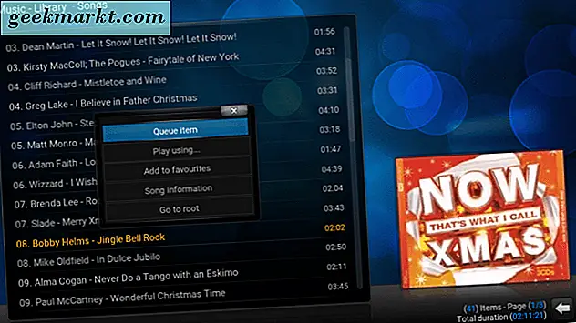 Ngoài ra, bạn có thể nhấp chuột phải vào một mục menu để mở menu ngữ cảnh trong ảnh ngay bên dưới. Điều đó bao gồm các tùy chọn khác cho mục đó. Ví dụ: nếu bạn nhấp chuột phải vào một bài hát được liệt kê trên menu, bạn có thể chọn các tùy chọn như Thêm vào mục yêu thích, mục Hàng đợi hoặc Thông tin bài hát .