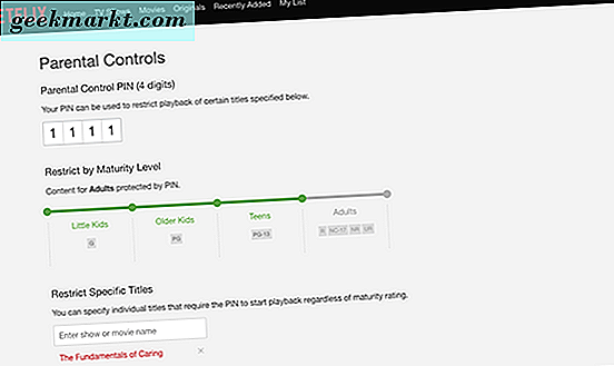 Đây là phần tốt nhất: Netflix không chỉ triển khai một loạt các kiểm soát của phụ huynh giúp bạn dễ dàng đảm bảo dòng sản phẩm mà con bạn đang xem phù hợp với nhóm tuổi của chúng. Với các bản cập nhật mới nhất cho cài đặt của họ, Netflix đã cho thấy họ đang lắng nghe khách hàng của họ và thêm những thay đổi mà mọi người đã muốn trong nhiều năm. Ngoài các thông số và kiểm soát của phụ huynh bạn luôn có thể thiết lập từ tài khoản, điều này giới hạn những gì người dùng khác có thể thấy, giờ đây bạn có thể sử dụng mã PIN để hạn chế nội dung cụ thể từ con mình, cho phép họ thưởng thức nội dung Netflix mà không cần bạn phải xem cách sử dụng của họ như một con diều hâu. Điều này cho phép bạn tiếp tục xem tất cả các hành động, kinh dị và lãng mạn mà bạn muốn trên tài khoản của mình mà không phải lo lắng về những đứa trẻ trong ngôi nhà của bạn. Hãy xem xét các kiểm soát của phụ huynh khác nhau được cung cấp bởi Netflix.